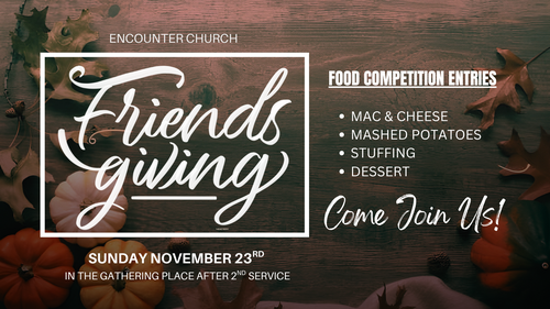 It’s time for our annual Friendsgiving Celebration—and you’re invited! Join us after the 2nd service for an afternoon filled with food, fellowship, and friendly competition. After Second Service